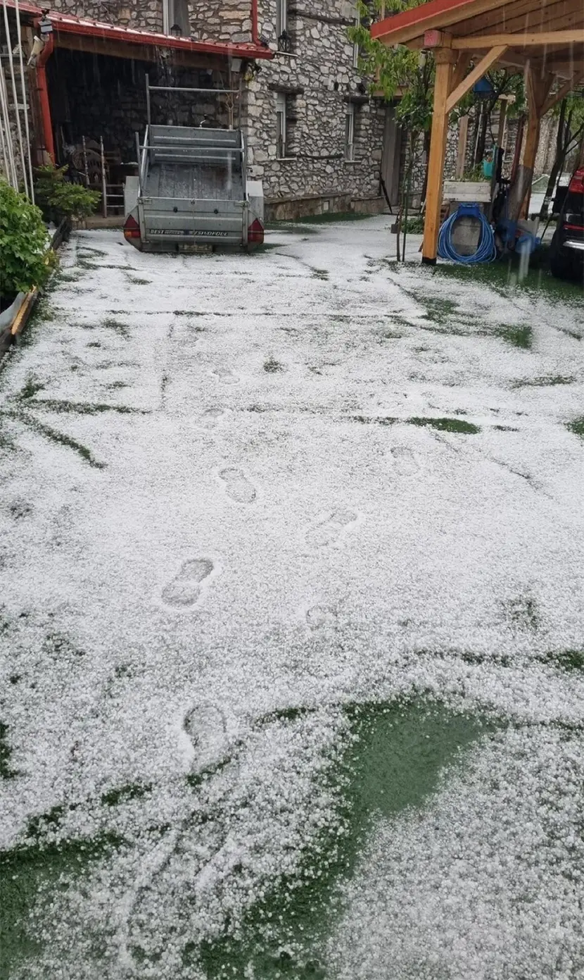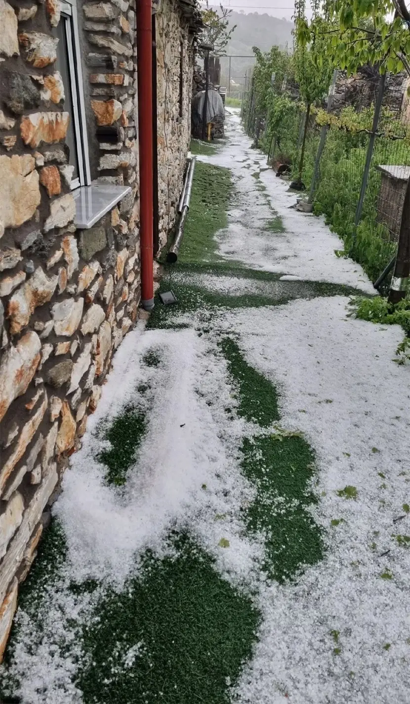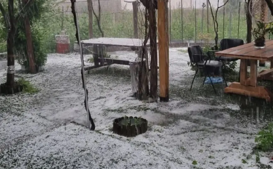 Πριν πέσει το χαλάζι που είχε το μέγεθος φουντουκιού, προηγήθηκε έντονη βροχόπτωση συνοδευόμενη από δυνατούς ανέμους.