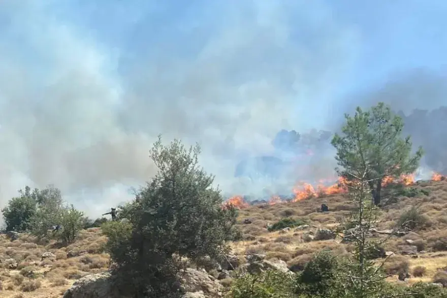 Στο σημείο επιχειρούν πυροσβεστικές δυνάμεις, συνεργεία της αυτοδιοίκησης και εθελοντές, με στόχο να μην απειληθεί το γειτονικό μεγάλο δάσος.