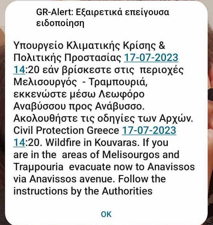 Αυτό το οποίο θέλουμε να ενημερώσουμε αυτή την ώρα είναι λίγο δύσκολη ώρα. Είναι όλοι οι πολίτες που μένουν εκεί στην περιοχή Πέτα – Κουβαρά στο νου τους ότι μπορεί να εκδοθούν και άλλα προειδοποιητικά μηνύματα τα οποία θα πρέπει να έχουν το νου τους».