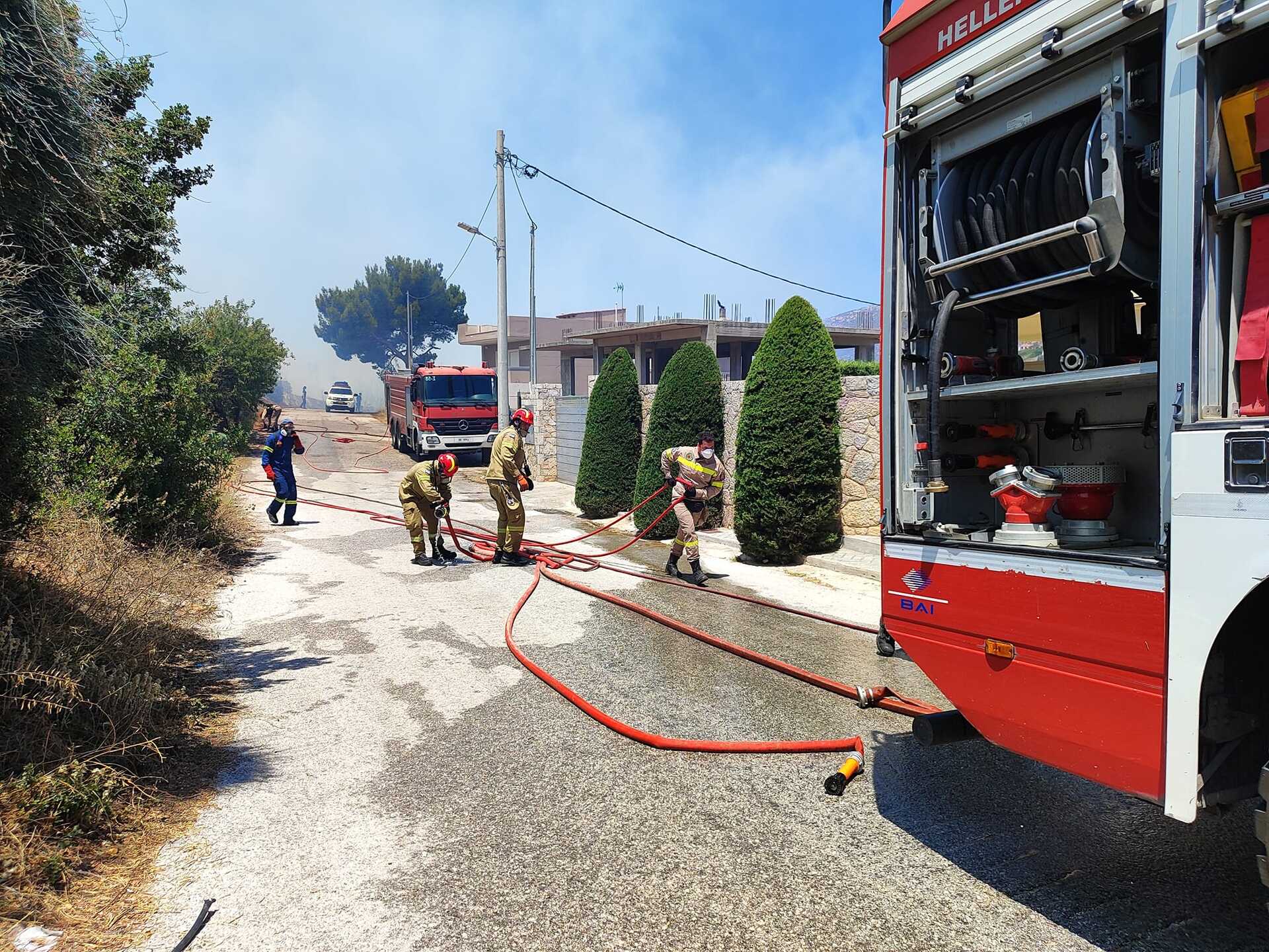 Κοντά στο σημείο που ξέσπασε η φωτιά υπάρχουν κατοικίες χωρίς να απειλούνται μέχρι στιγμής, ενώ στην περιοχή πνέουν ισχυροί άνεμοι.