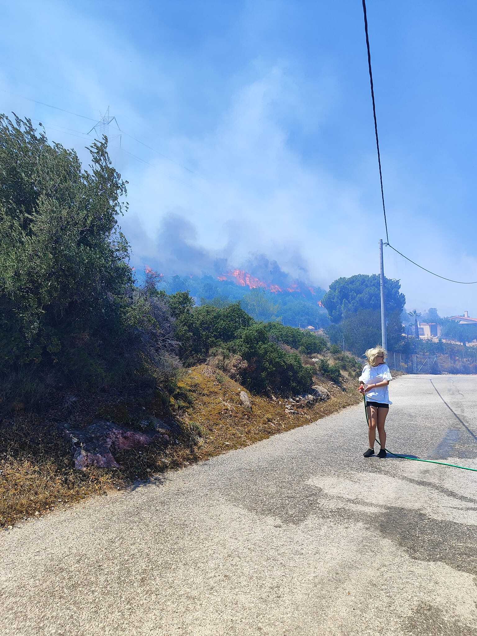 Συνέχισε λέγοντας πως: «Η φωτιά καίει προς τον λόφο. Ωστόσο υπάρχουν οικισμοί στις πέριξ περιοχές και αυτό είναι κάτι που μας απασχολεί ιδιαιτέρως.