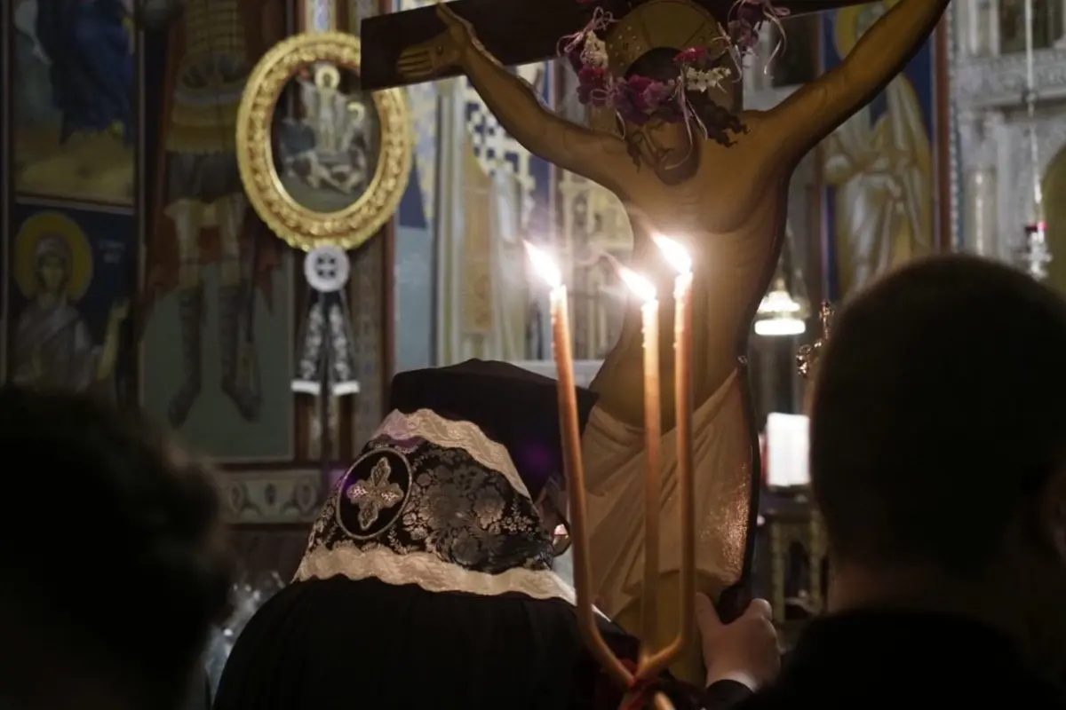 Το πρωί της Μεγάλης Πέμπτης τελείται ο εσπερινός της Μεγάλης Παρασκευής μαζί με τη Θεία Λειτουργία του Μεγάλου Βασιλείου. Οι ιερείς κατά την ετοιμασία της Θείας Κοινωνίας εξάγουν δύο “αμνούς” (το μέρος του άρτου το οποίο μεταβάλλεται σε σώμα Χριστού) και διατηρούν τον ένα αφού τον τεμαχίσουν και τον αποξηράνουν, σε ασφαλές σημείο (μέσα στο αρτοφόριο πάνω στην αγία τράπεζα) για έναν ολόκληρο χρόνο για την κοινωνία των πιστών σε έκτακτες περιπτώσεις. Το βράδυ τελείται ο όρθρος της Μεγάλης Παρασκευής, στον οποίο αναπαριστάται το Θείο Δράμα της Σταύρωσης και διαβάζονται τα δώδεκα ευαγγέλια που περιγράφουν τα γεγονότα από τη σύλληψη έως και την ταφή του Χριστού.