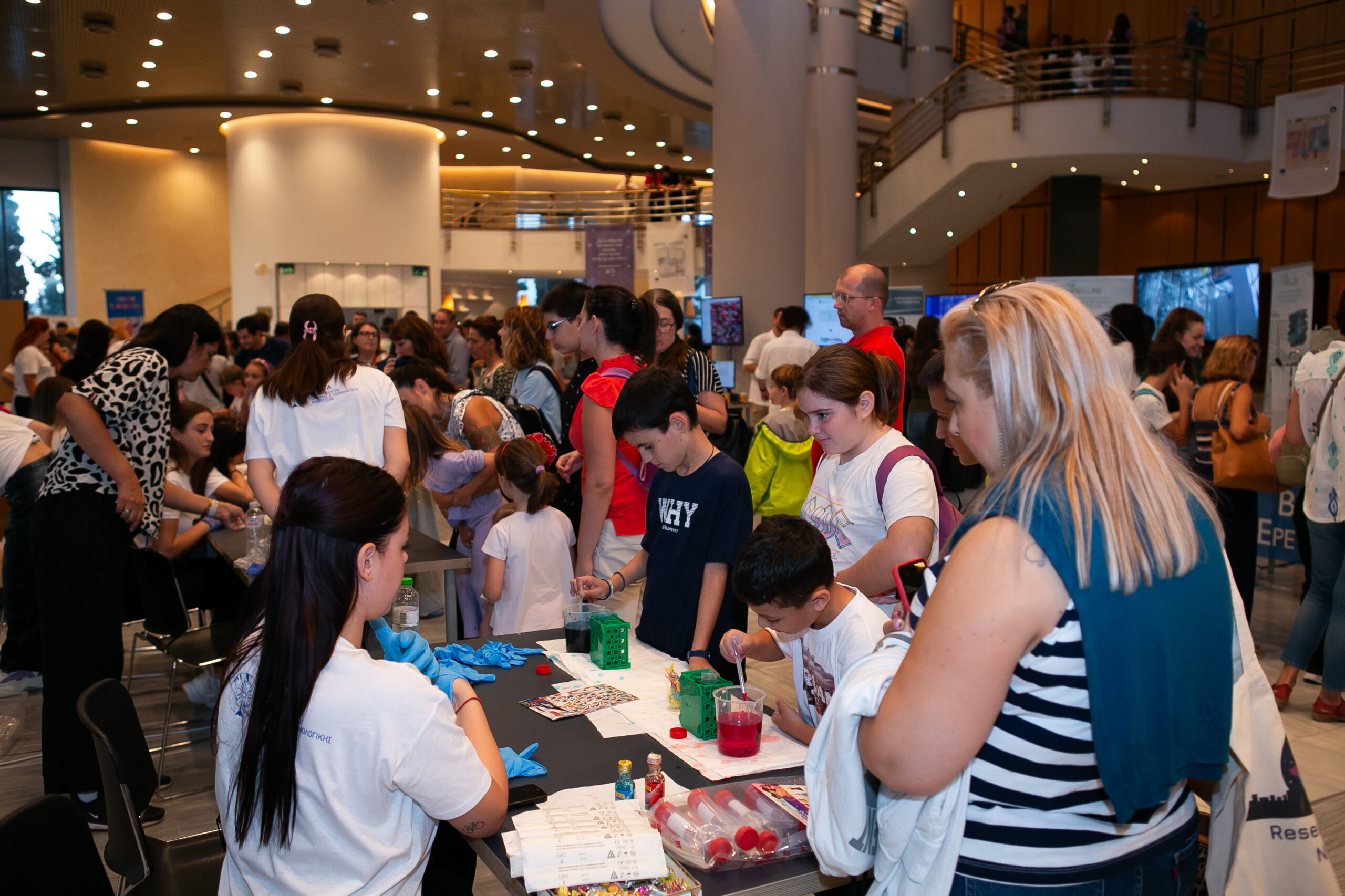 Με ενθουσιασμό και ενδιαφέρον ανταποκρίθηκαν οι μικροί σε ηλικία επισκέπτες στα εργαστήρια επιστήμης για παιδιά, στο κυνήγι θησαυρού στη Χώρα της τεχνολογίας, στο τέλος του οποίου κέρδισαν αναμνηστικά δώρα, σε πειράματα φυσικής και χημείας, παρατηρήσεις φαινομένων αλλά και σε πλήθος δημιουργικών εργαστηρίων που τους έφεραν με ευφάνταστους τρόπους σε επαφή με τον κόσμο της επιστήμης και της έρευνας. Η εκδήλωση πλαισιώθηκε την ίδια στιγμή από καλλιτεχνικά και μουσικά δρώμενα που εμπλούτισαν τη Βραδιά δίνοντας το δικό τους χρώμα. Στο επίκεντρο αυτών βρέθηκε η συναυλία της Κρατικής Ορχήστρας Θεσσαλονίκης η οποία ταξίδεψε μουσικά τους επισκέπτες μέσω του αφιερώματός της στον αστροφυσικό και συνθέτη William Herschel. Ιδιαίτερο ενδιαφέρον παρουσίασε για τους επισκέπτες και η ζωντανή σύνδεση με το CERN, τον «Ευρωπαϊκό Οργανισμό Πυρηνικών Ερευνών» και τα Control Rooms των Πειραμάτων του Μεγάλου Επιταχυντή Αδρονίων (LHC), μία δράση υπό τον τίτλο: “A journey to the heart of matter”.