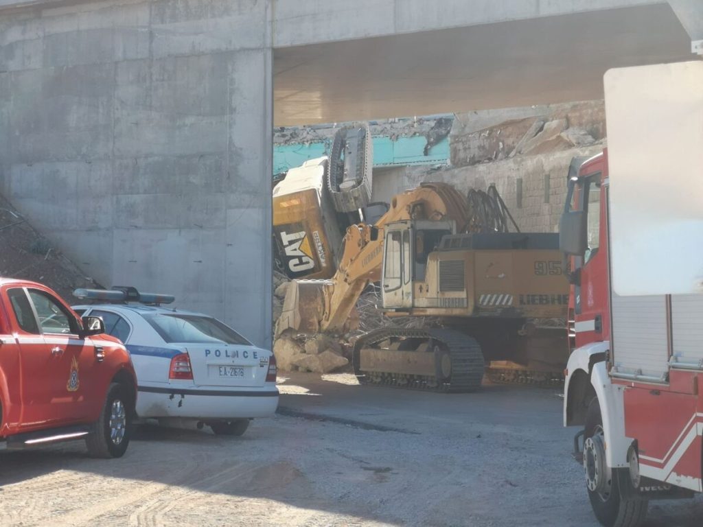 Τμήμα της γέφυρας κατέρρευσε με αποτέλεσμα να καταπλακώσει και να εγκλωβίσει – σύμφωνα με μαρτυρίες – δύο εργαζόμενους χειριστές βαρέου μηχανήματος, οι οποίοι και απεγκλωβίστηκαν με επιτυχία από δύναμη της Πυροσβεστικής Υπηρεσίας Μεγάρων που έφθασε στο σημείο.