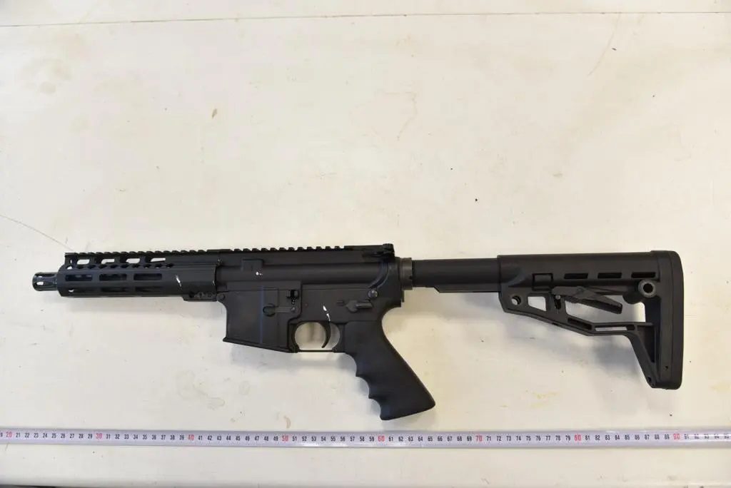 Αφού οι πυροσβέστες έσβησαν τη φωτιά ακολούθησε έλεγχος εντός της οικίας όπου μεταξύ άλλων βρέθηκε ένα ημιαυτόματο όπλο και ποσότητες ναρκωτικών.