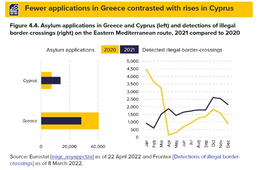 Η Κύπρος ενίσχυσε τη λήψη αποφάσεων το 2021, με δυόμισι φορές περισσότερες αποφάσεις από ό,τι το 2020. Από τις τέσσερις πρώτες εθνικότητες, η μεγαλύτερη αύξηση σε απόλυτους αριθμούς ήταν για τους υπηκόους της Ινδίας και του Μπαγκλαντές, καταγράφοντας σχεδόν 9 και 12 ισάριθμες αποφάσεις, αντίστοιχα, όπως και την προηγούμενη χρονιά, ακολουθούμενες από Πακιστανούς και Σύρους.