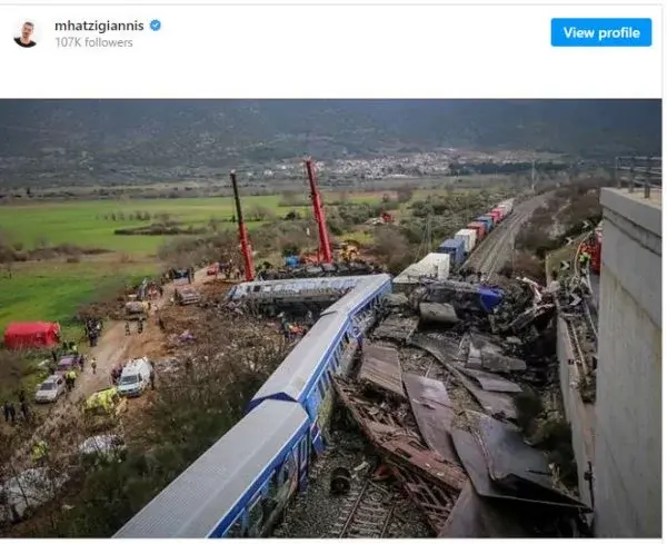 Στη λεζάντα που έγραψε δεν μπορεί να κρύψει τη θλίψη του: «Είμαι συγκλονισμένος. Θλιβερή μέρα η σημερινή από την πολύνεκρη σύγκρουση τρένων στα Τέμπη. Τα θερμά μου συλλυπητήρια στις οικογένειες των θυμάτων».