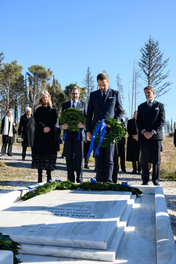 Η ατμόσφαιρα στο Τατόι ήταν βαριά και φορτισμένη συναισθηματικά. Την επιμνημόσυνη δέηση τέλεσε ο Μητροπολίτης Ιλίου, Αχαρνών και Πετρουπόλεως, Αθηναγόρας, μαζί με τον Αρχιμανδρίτη Νικόδημο Αθανασίου και άλλους κληρικούς. Δίπλα στην Άννα Μαρία στάθηκαν τα παιδιά της, Παύλος, Νικόλαος, Θεοδώρα και Φίλιππος, ενώ στην τελετή παραβρέθηκαν επίσης στενοί συνεργάτες και παλιοί φίλοι του Κωνσταντίνου, τιμώντας τη μνήμη και τη φιλία τους με τον εκλιπόντα.