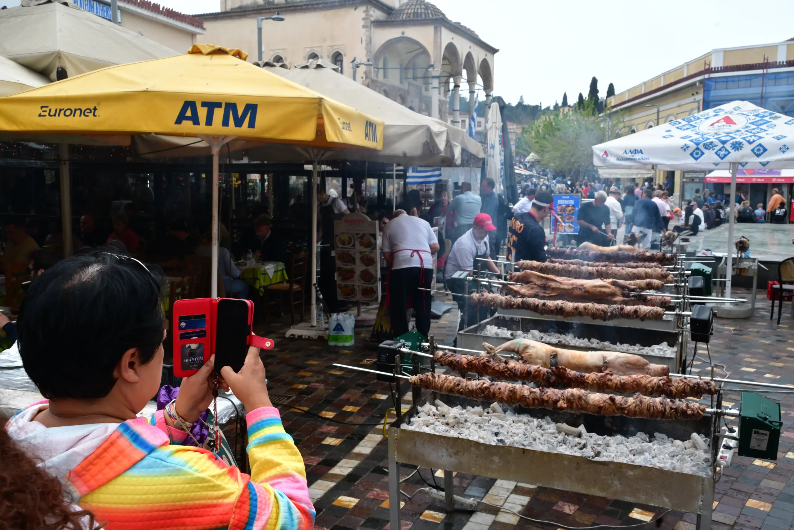Ιδιαίτερα έντονο είναι το ενδιαφέρον των τουριστών που κυκλοφορούν στο κέντρο της Αθήνας καθώς σπεύδουν να φωτογραφίσουν τις σούβλες.