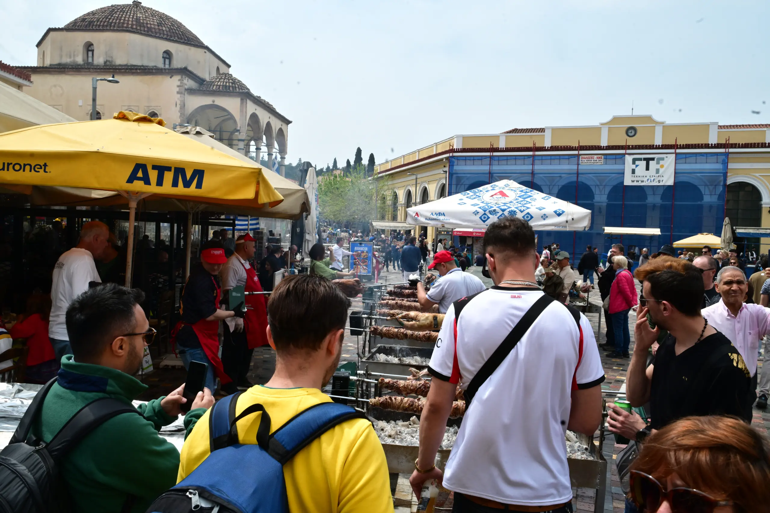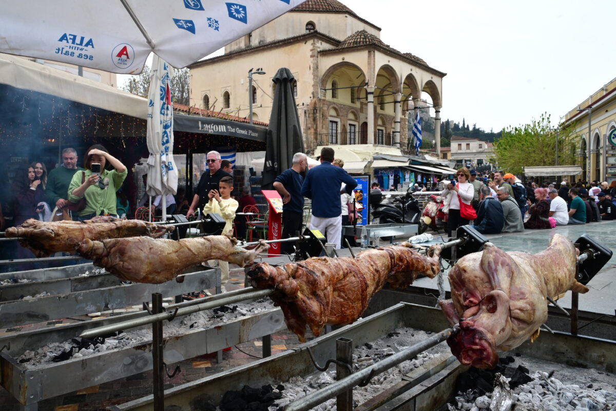 Σύμφωνα με εκτιμήσεις σήμερα και αύριο αναμένεται να σουβλιστούν περισσότερα από 150 αρνιά. Καθώς αυξάνεται η κίνηση στο κέντρο της Αθήνας, οι πρώτοι μεζέδες βγήκαν μετά τις 11.
