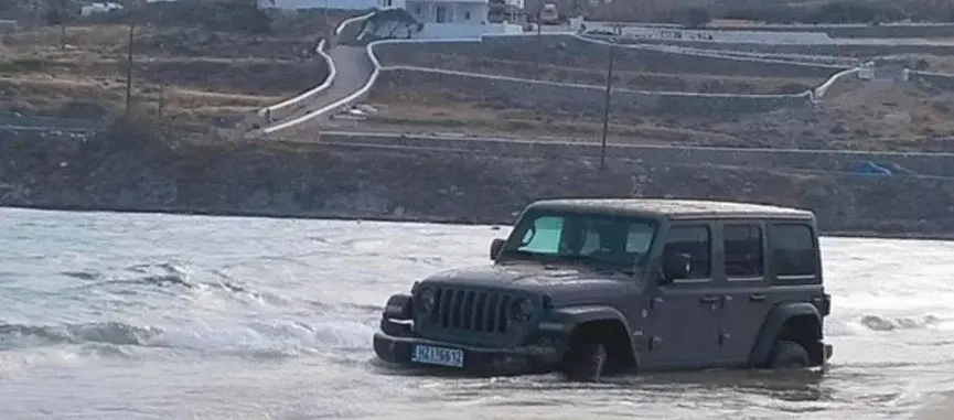Κάποια στιγμή ο οδηγός αποφάσισε να μπει με το όχημα μέσα στη θάλασσα, όπως μεταδίδει το σχετικό ρεπορτάζ για άγνωστο λόγο.