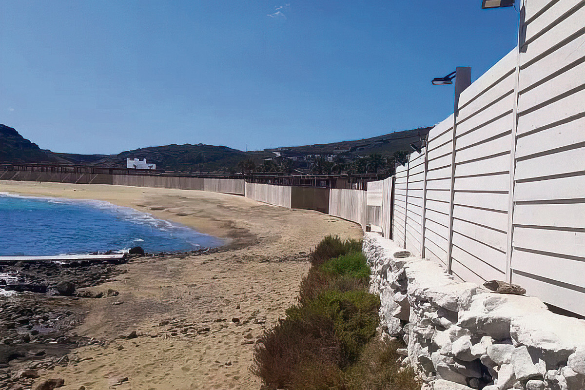 Περίπου 45.000 τετραγωνικά μέτρα αυθαίρετων κατασκευών είχαν εντοπίσει τα μικτά κλιμάκια στον έλεγχο που είχαν πραγματοποιήσει στο παραλιακό κέντρο της Μυκόνου στις αρχές Απριλίου, σύμφωνα με το πόρισμα που διαβιβάστηκε στην Υποδιεύθυνση Αστυνομίας και στο υπουργείο Περιβάλλοντος και Ενέργειας. Ανάμεσα σε αυτές τις κατασκευές ήταν και τα ξύλινα καταστρώματα που ως… διά μαγείας απέκτησαν… αμμώδες περιβάλλον, παρά το γεγονός ότι η επιχείρηση έχει σφραγιστεί. Τη νέα παράβαση διαπίστωσαν οι αστυνομικοί που βρέθηκαν στις 13:30 το μεσημέρι της Τετάρτης στο παραλιακό μαγαζί για να ελέγξουν αν τηρείται το «λουκέτο». Στο χώρο δεν υπήρχαν εργάτες, καθώς οι διαδικασίες μεταφοράς της άμμου από την παραλία είχαν γίνει σε προγενέστερο χρόνο.