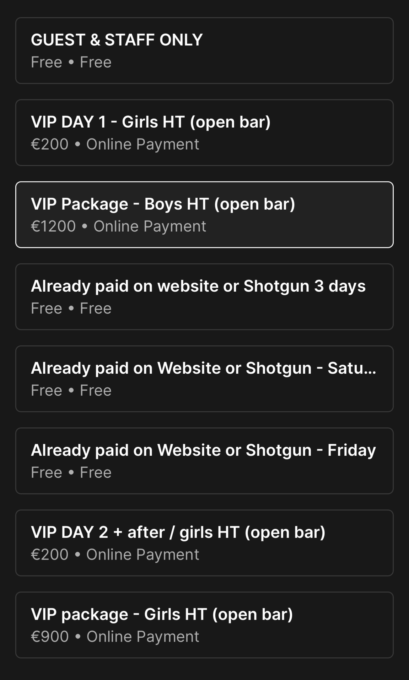 Οι πελάτες περνούν χωρίς να το ξέρουν έναν εκ των προτέρων έλεγχο (Face Control) καθώς θα πρέπει να είναι ευκατάστατοι, να γνωρίζουν κόσμο, να έχουν να πληρώσουν το εισιτήριο της εισόδου, που κυμαίνεται από 100 έως και 1.000 ευρώ. Ο κάθε συμμετέχων έπαιρνε παλαιότερα κάρτα εισόδου. Σήμερα μοιράζονται ομοιόχρωμα πλαστικά βραχιολάκια που παραπέμπουν σε καταστάσεις «all inclusive» των ξενοδοχείων και δεν δίνουν… στόχο.