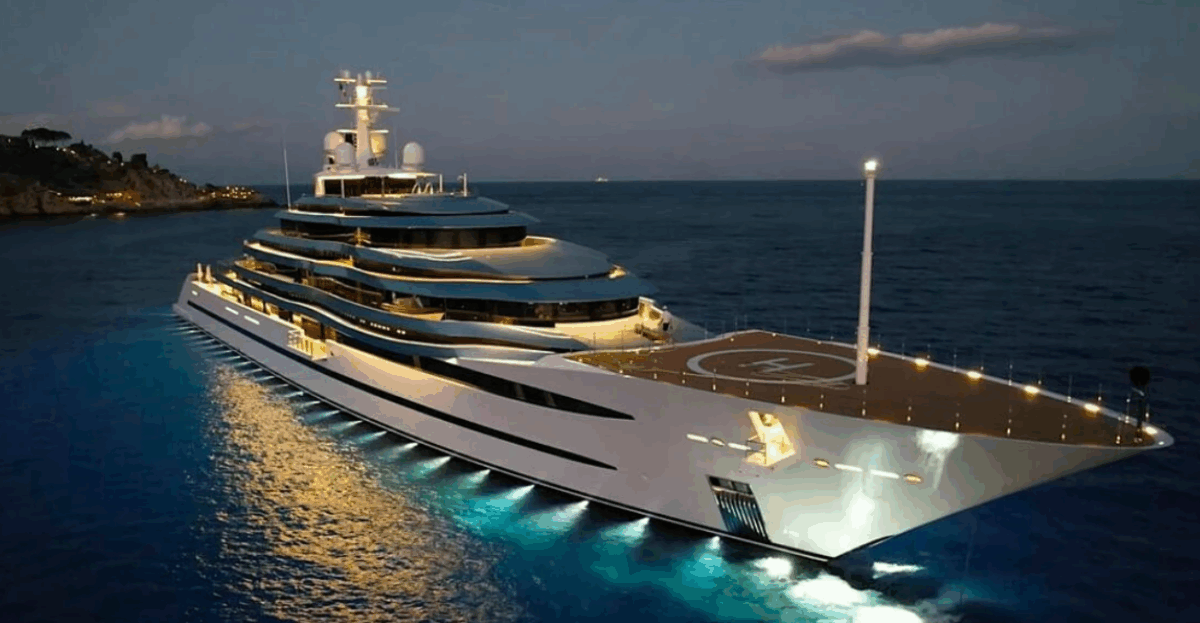 Η θαλαμηγός των 300 εκατ. δολαρίων αγκυροβόλησε στον Ορνό, τραβώντας τα βλέμματα ντόπιων και τουριστών.