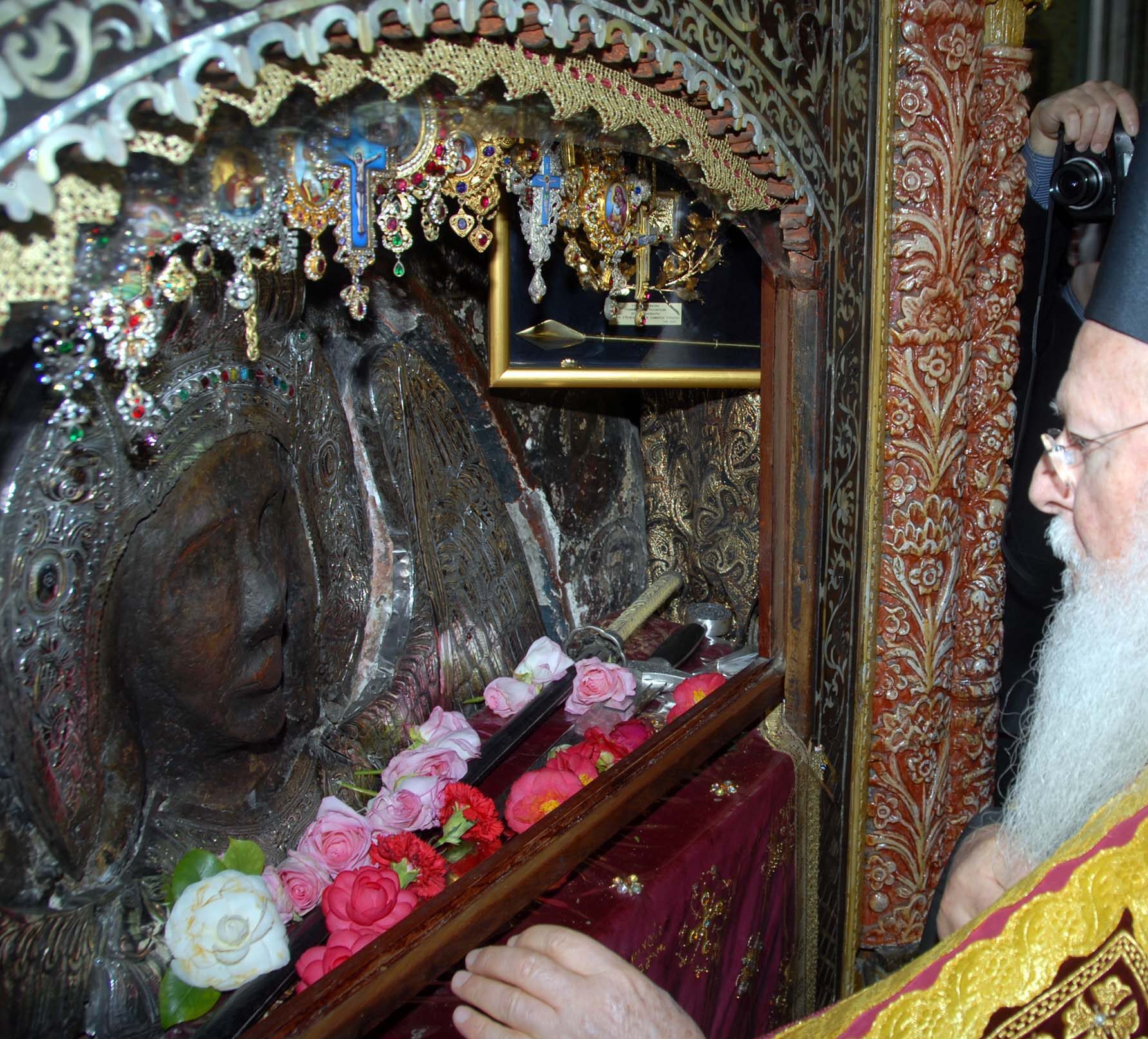 Από αυτούς πάρα πολλοί πεζοπορούν φορτωμένοι μια λαμπάδα «στο μπόϊ τους», σχεδόν 40 χιλιόμετρα, από την πόλη της Μυτιλήνης μέχρι το μεγάλο προσκύνημα με το μοναδικό στην Ορθοδοξία ανάγλυφο εβένινο μεγάλο εικόνισμα του Αρχαγγέλου, το πλασμένο από άγνωστο υλικό. Σύμφωνα πάντως με την παράδοση, πλάστηκε από χώμα και αίμα καλογέρων που σκοτώθηκαν από πειρατές.