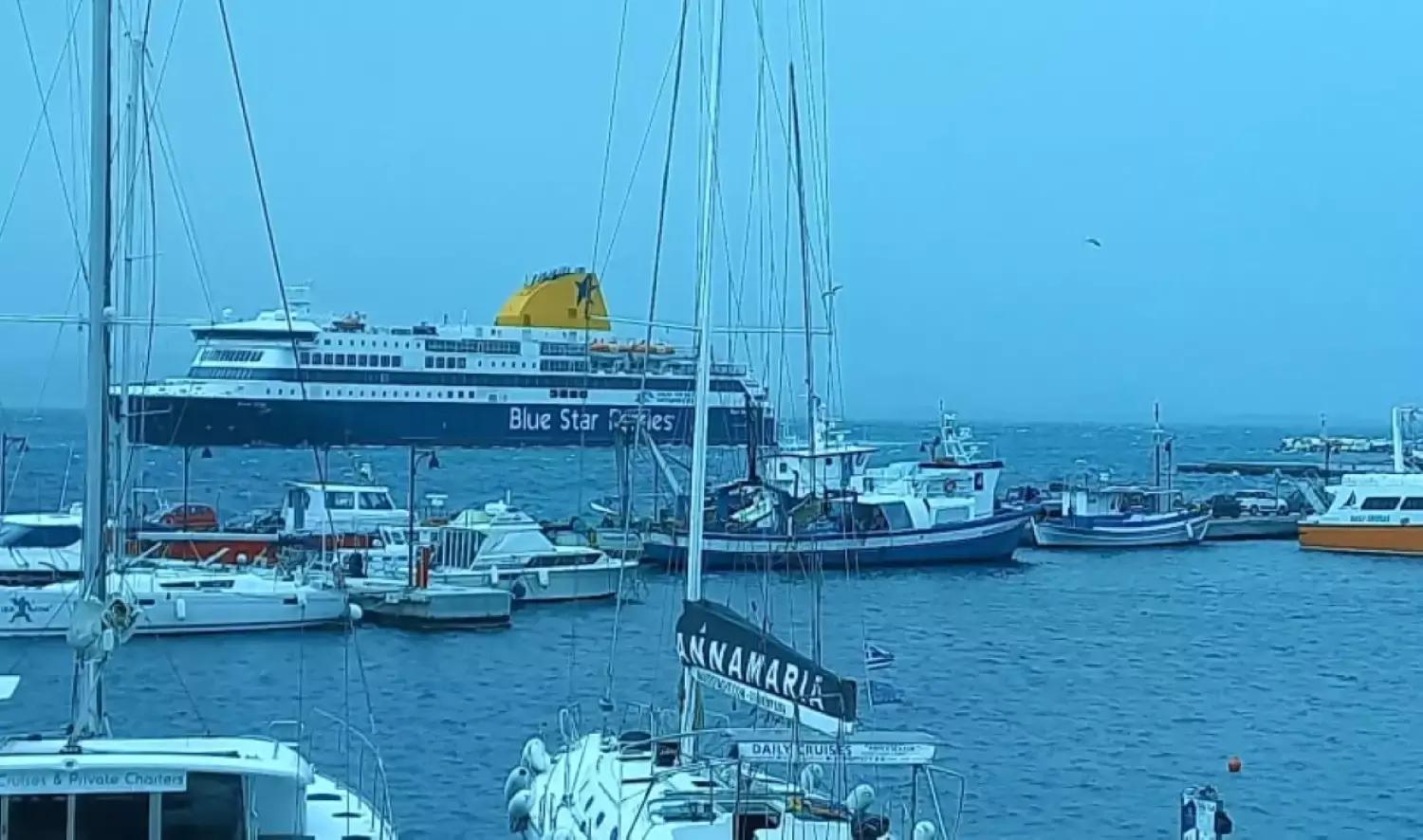 Τελικά το πλοίο, μετά από υπεράνθρωπες προσπάθειες, έριξε άγκυρες και κάβους στο λιμάνι με την 7η προσπάθεια, όπως αναφέρει το cyclades24.gr, στις 14:35.
