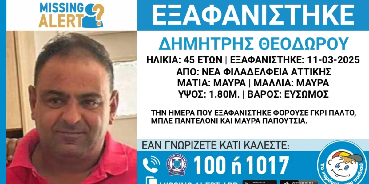 Ο Δημήτρης Θεοδώρου αγνοούνταν από τις 11/3 από την περιοχή της Νέας Φιλαδέλφειας και οι φόβοι της οικογένειας επιβεβαιώθηκαν.