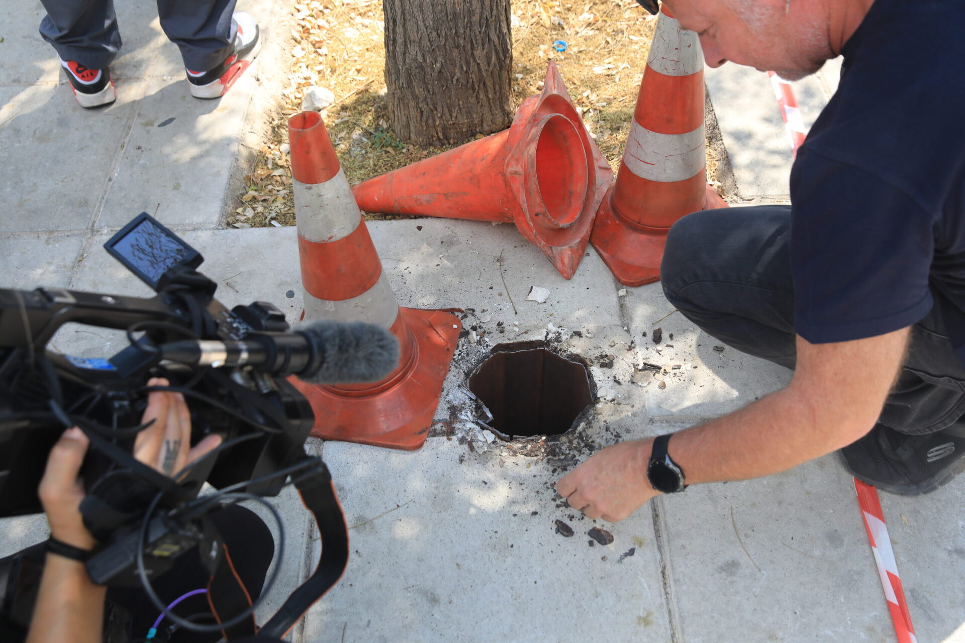 Συνεργείο του δήμου στη Νέα Φιλαδέλφεια προσπαθεί να απομακρύνει την κολόνα από τη μέση του δρόμου, καθώς έχουν δημιουργηθεί κυκλοφοριακά προβλήματα ενώ εξετάζεται πώς έπεσε.