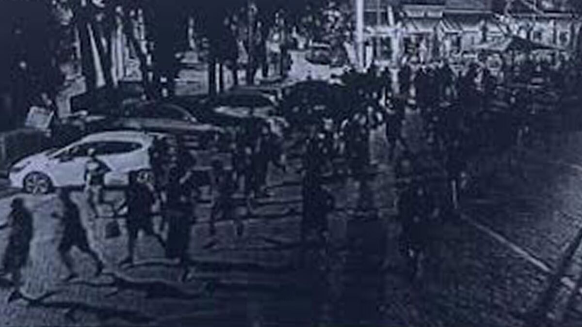 Ώρα 23:05:57. Οι κάμερες του γηπέδου της ΑΕΚ καταγράφουν την επίθεση των χούλιγκαν και την αρχή του χάους. Οπαδοί της ΑΕΚ συγκεντρώνονται προς την οδό Πατριάρχου Ιωακείμ όπου έχουν ενημερωθεί για τους συγκεντρωμένους Κροάτες και τους Ελληνες συνεργούς τους. Εκτοξεύουν φωτοβολίδες προς το μέρους τους, προσπαθώντας να τους απωθήσουν από την περιοχή, όμως γρήγορα βλέπουν το τάγμα να επιταχύνει προς το μέρος τους. Οι οπαδοί της ΑΕΚ πετούν ό,τι αντικείμενα βρίσκουν σε μια προσπάθεια να αμυνθούν. Από τις μολότοφ που εκτοξεύονται στις 23:06:40 ξεσπά πυρκαγιά στην πλατεία δίπλα από το γήπεδο. Στις 23:07:49, οι οπαδοί της ΑΕΚ ξεκινούν να υποχωρούν, όμως γρήγορα τους προλαβαίνουν οι επιτιθέμενοι.