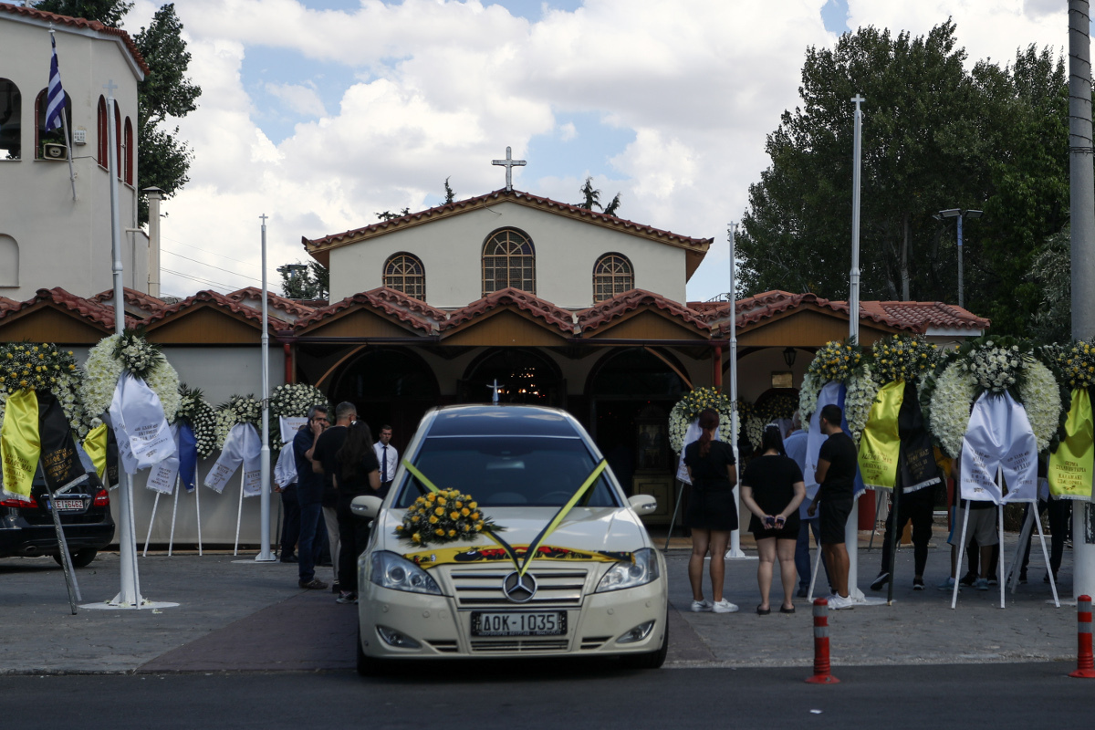 Άνθρωποι κάθε ηλικίας, οπαδοί της ΑΕΚ, φίλοι και συγγενείς του Μιχάλη Κατσουρή, λένε το τελευταίο αντίο στον 29χρονο ο οποίος δολοφονήθηκε κατά τη διάρκεια των αιματηρών επεισοδίων στη Νέα Φιλαδέλφεια.