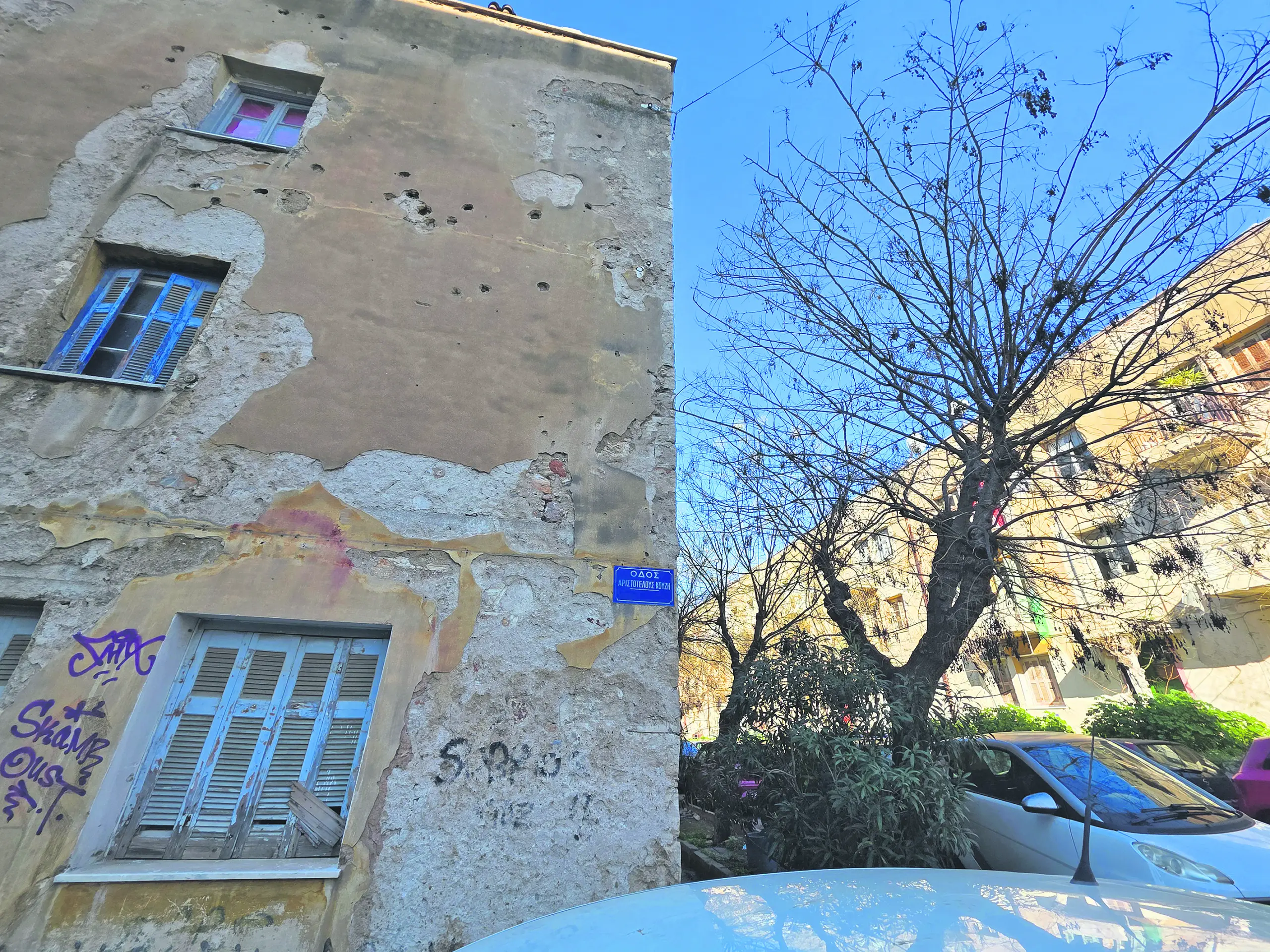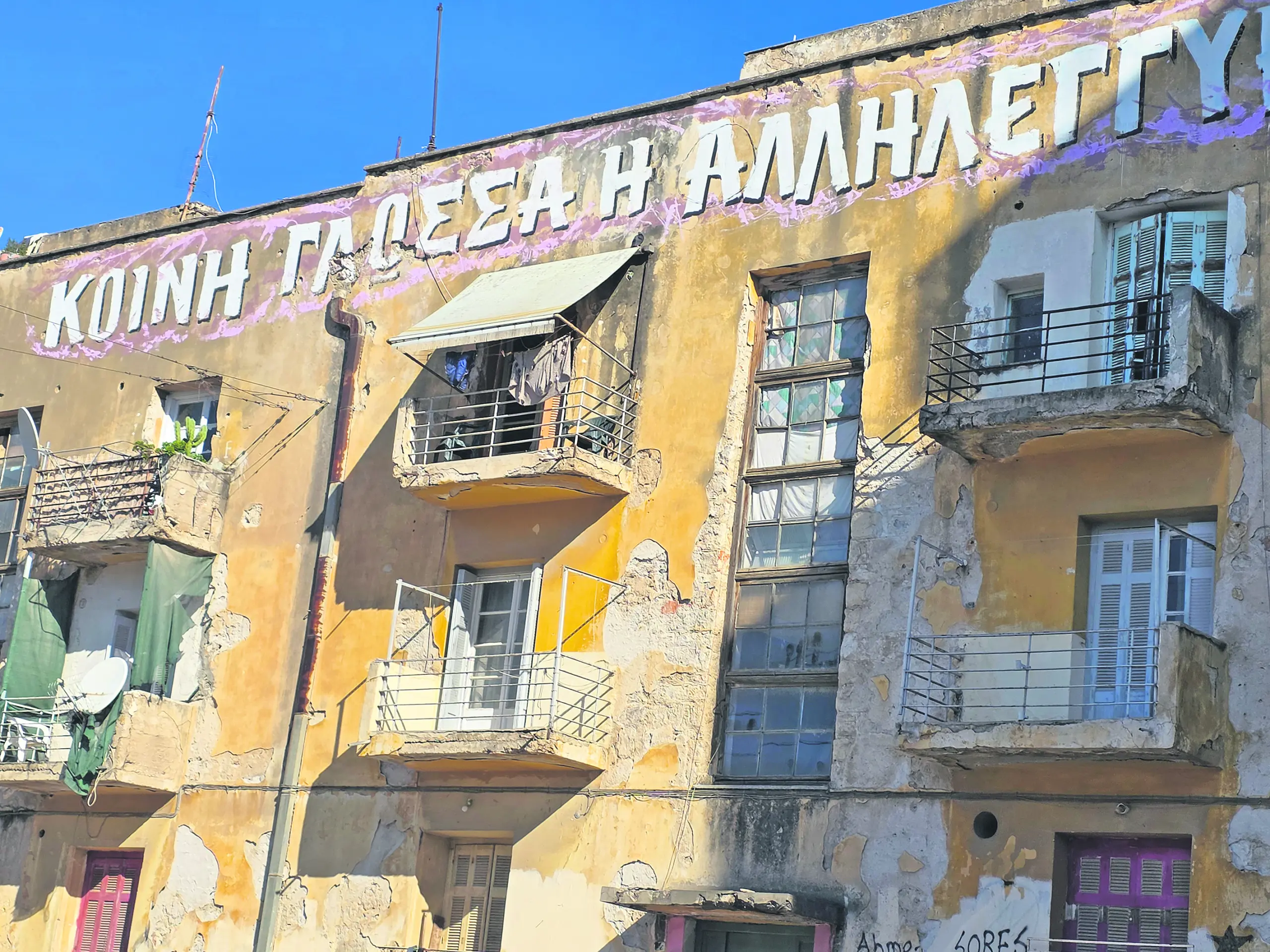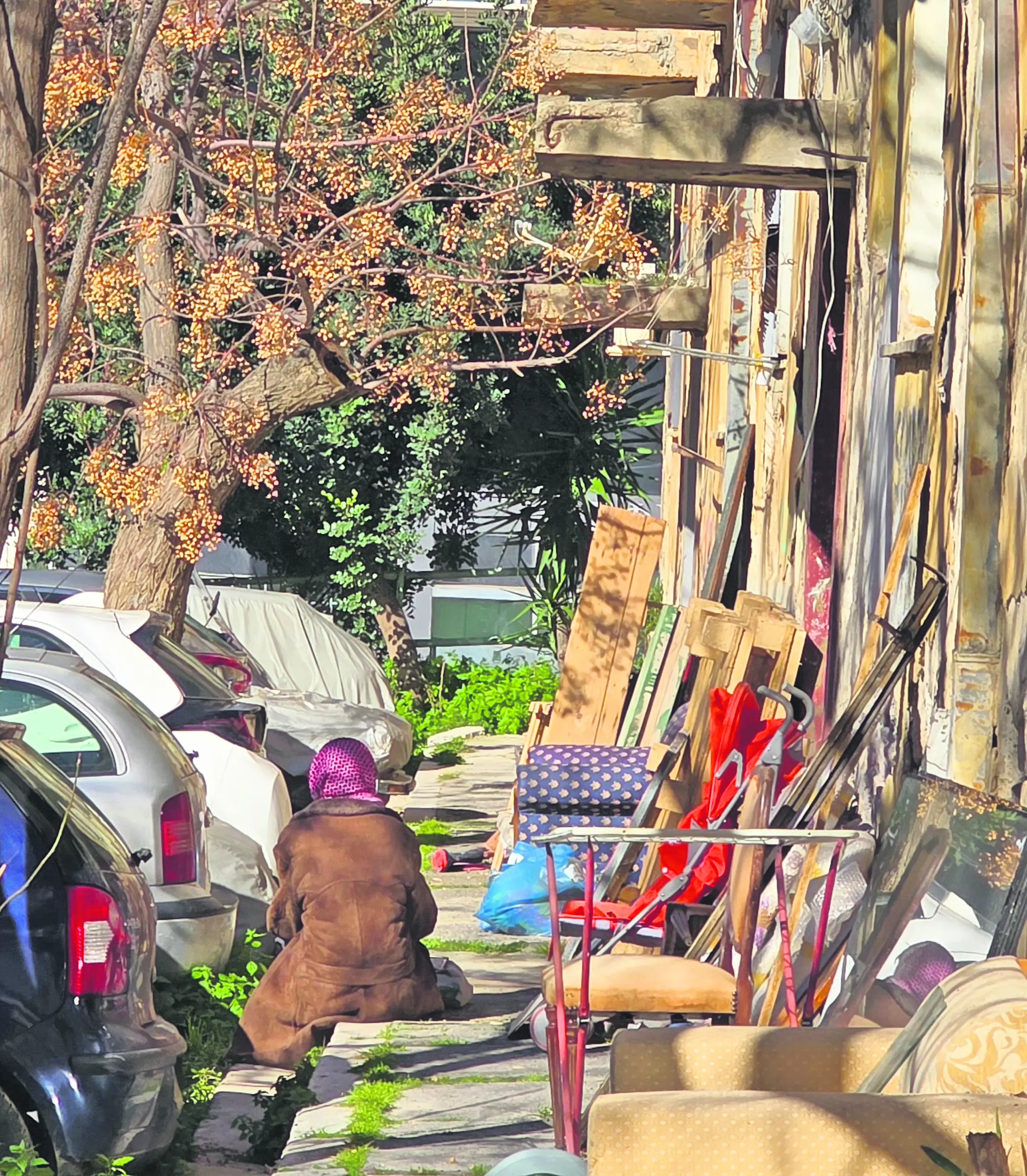 Σε μια πόλη που εκσυγχρονίζεται ραγδαία, σε αυτήν τη γειτονιά ο χρόνος μοιάζει να έχει παγώσει εδώ και δεκαετίες… Στην οδό Βεγορίτιδας, ένα νοικοκυριό είναι ακουμπισμένο στο πεζοδρόμιο. Ανάμεσα σε παλιούς καναπέδες, καρέκλες και μικροέπιπλα, μία νεαρή γυναίκα κάθεται με ένα τσιγάρο στο χέρι. Δεν μιλάει ελληνικά, μας λέει ότι είναι από τη Γερμανία και ζει εδώ. Οχι μέσα στο κτίριο αλλά έξω, στον δρόμο, με τη φορητή οικοσκευή της.