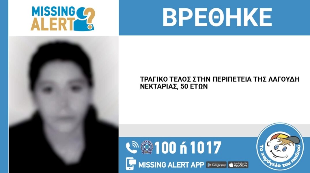 Το «Χαμόγελο του Παιδιού», που είχε ενεργοποιήσει Missing Alert στις 4 Οκτωβρίου, επιβεβαίωσε τον θάνατο της Νεκταρίας Λαγούδη, εκφράζοντας συλλυπητήρια στην οικογένεια και δηλώνοντας πως θα σταθεί στο πλευρό της για κάθε μορφή στήριξης.
