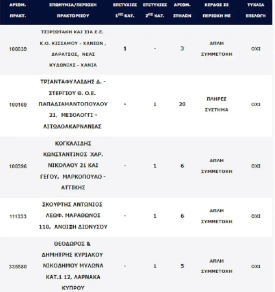 Σύμφωνα με την σχετική ανακοίνωση του ΟΠΑΠ, το δελτίο παίχτηκε στο Δαρατσό της Νέας Κυδωνίας στα Χανιά και ο τυχερός παίκτης έγινε πλουσιότερος κατά 2,6 εκατομμύρια ευρώ. Την ίδια ώρα, στην δεύτερη κατηγορία (5άρι) βρέθηκαν έξι τυχερά δελτία.
