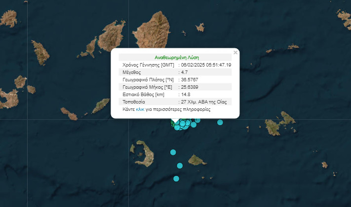 Σύμφωνα με δεδομένα που δημοσιοποιήθηκαν από το Γεωδυναμικό Ινστιτούτο του Εθνικού Αστεροσκοπείου της Αθήνας, καταγράφηκαν ακόμη έξι «ασθενείς» σεισμικές δονήσεις στον θαλάσσιο χώρο μεταξύ Αμοργού και Σαντορίνης. Συγκεκριμένα: