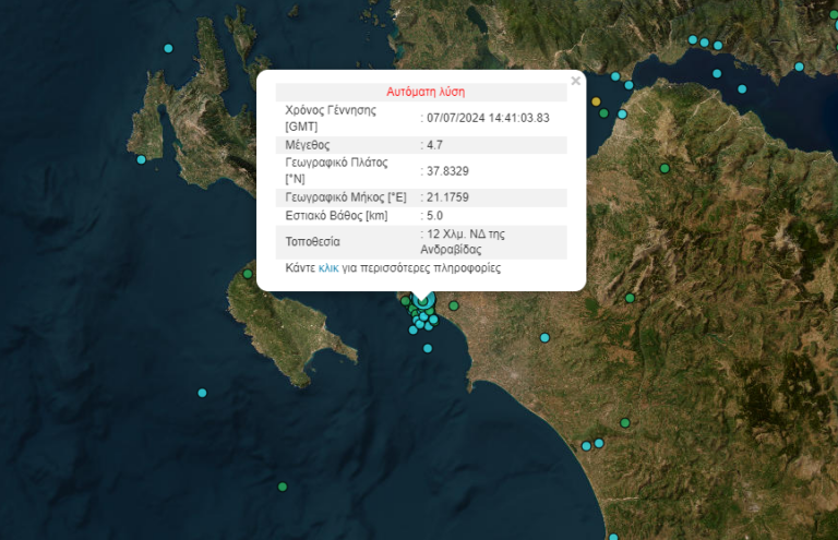 Το εστιακό βάθος του σεισμού στην Ηλεία, υπολογίζεται στα 5χιλιόμετρα ενώ το επίκεντρό του εντοπίζεται 12χιλιόμετρα νοτιοδυτικά της Ανδραβίδας.