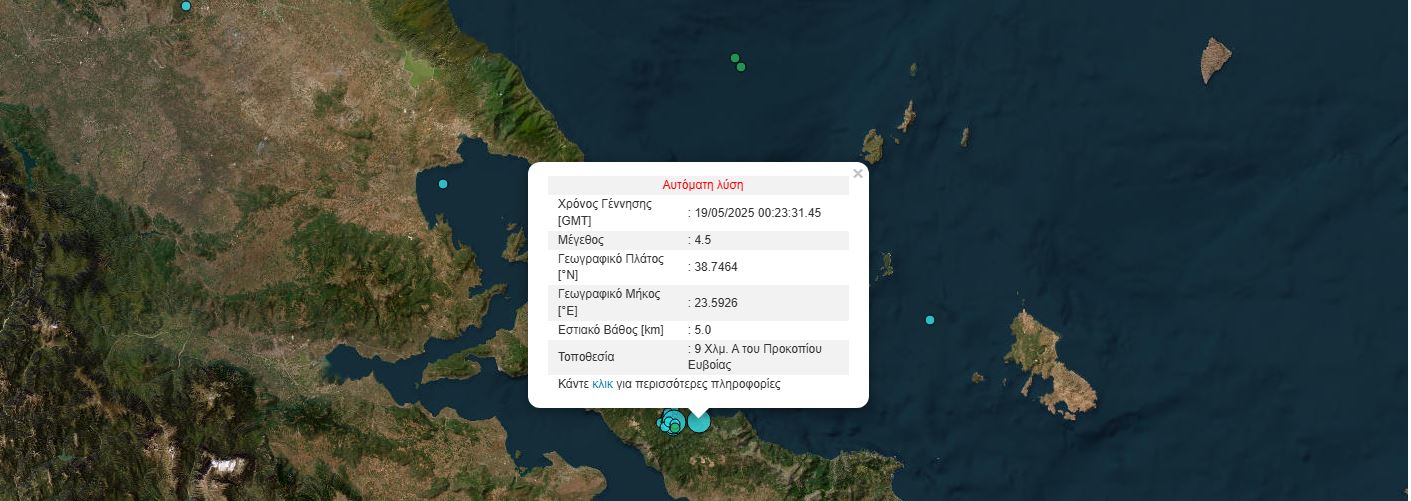 Ο σεισμολόγος Γεράσιμος Παπαδόπουλος με ανάρτησή του αναφέρει: «Σεισμός μεγέθους 4.5 στις 3.23 με επίκεντρο κοντά στο Προκόπι Εύβοιας. Ξύπνησε πολλούς και στην Αττική. Χθες, σε ανάρτηση και δηλώσεις μου σε ΜΜΕ είπα να μην αρχίσουμε τα τυπικά “δεν υπάρχει λόγος ανησυχίας” και ότι απαιτείται πολύ προσεκτική αξιολόγηση. Αυτά εξακολουθούν να ισχύουν».