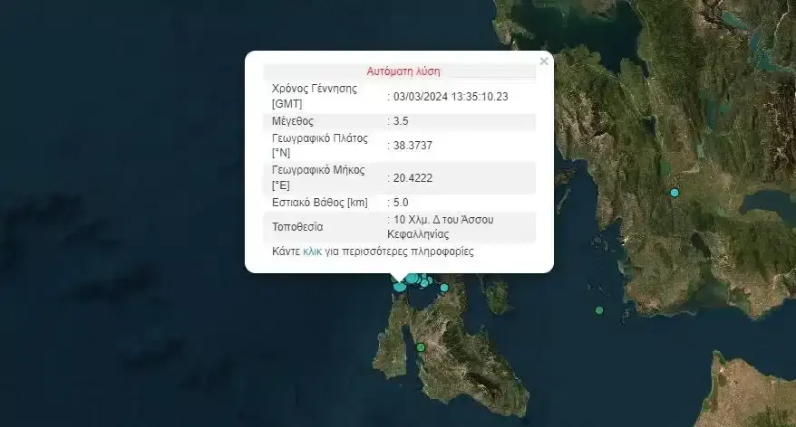 Τις τελευταίες ώρες έχουν καταγραφεί παρά πολλοί σεισμοί μικρού μεγέθους στην Κεφαλονιά και όλοι τους έχουν επίκεντρο στην ίδια θαλάσσια περιοχή στο βόρειο τμήμα του νησιού.