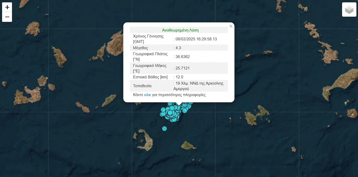 Ειδικότερα, σύμφωνα με το Γεωδυναμικό Ινστιτούτο σημειώθηκε σεισμική δόνηση 4,3 Ρίχτερ στη θαλάσσια περιοχή μεταξύ της Σαντορίνης και Αμοργού.