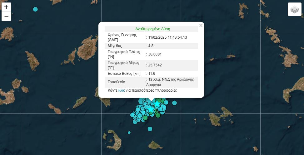 Παράλληλα, το επίκεντρό του εντοπίζεται 14 χιλιόμετρα Νότια της Αρκεσίνης.