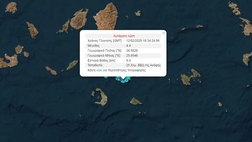 Σύμφωνα με το Γεωδυναμικό Ινστιτούτο Αθηνών η δόνηση σημειώθηκε 25 Χλμ. ΒΒΔ της Ανάφης και το εστιακό βάθος εντοπίστηκε 5 χλμ. Νωρίτερα είχε σημειωθεί σεισμός μεγέθους 4,2 στην Αμοργό.ή της Ανύδρου, συνεχίζονται με αμείωτο ρυθμό.