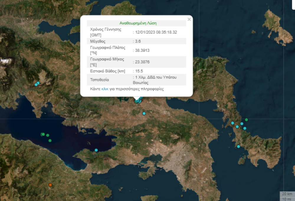 Είχε προηγηθεί ο σεισμός 3,7 Ρίχτερ το πρωί σήμερα στην ίδια περιοχή. O σεισμός σύμφωνα με την αυτόματη λύση του Γεωδυναμικού Ινστιτούτου Αθηνών είχε επίκεντρο 6 χλμ ανατολικά του Υπάτου Βοιωτίας ενώ το εστιακό του βάθος είναι στα 5 χλμ.