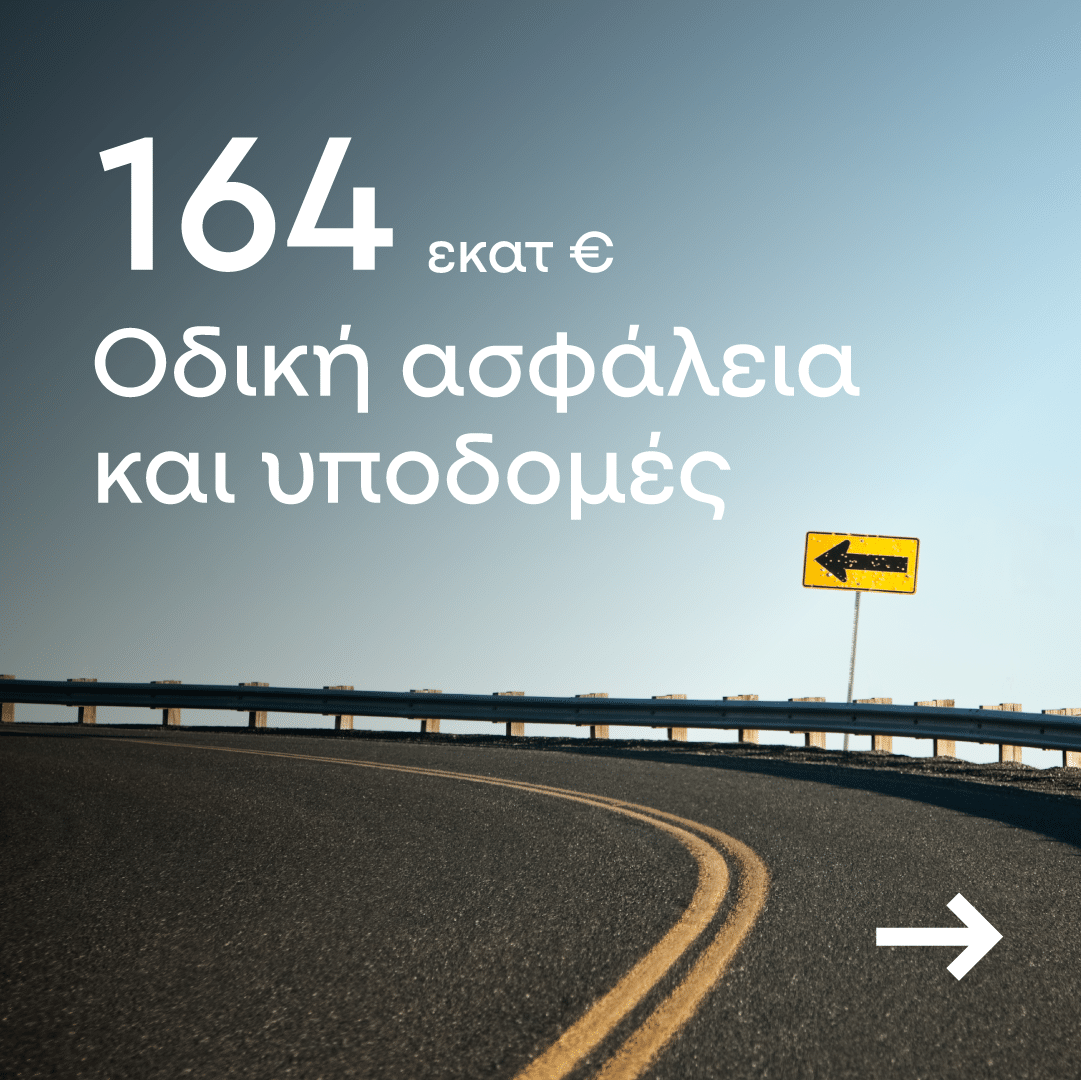 -Στον τομέα της οδικής ασφάλειας και των υποδομών θα διατεθούν 164 εκατ. ευρώ για την αναβάθμιση τμημάτων της Παλαιάς Εθνικής Οδού, τη δημιουργία ανισόπεδων κόμβων σε σημεία υψηλού κυκλοφοριακού φόρτου, την αποκατάσταση φθορών και στηθαίων στο οδικό δίκτυο αρμοδιότητας της Περιφέρειας, καθώς και τη διαπλάτυνση και επανασχεδίαση δρόμων στους Δήμους της περιοχής.