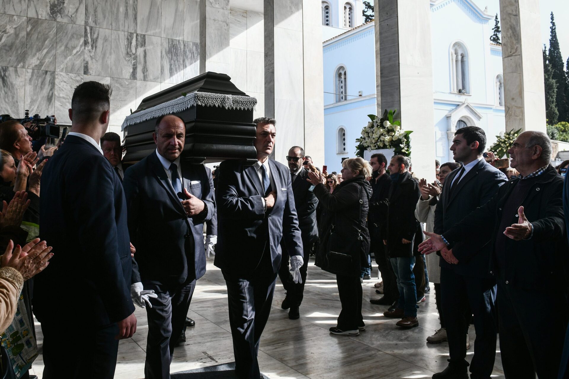 Στεφάνια για τον Νίκο Ξανθόπουλο έστειλαν η υπουργός Πολιτισμού, Λίνα Μενδώνη, καλλιτέχνες, η ΑΕΚ, της οποίας ο ηθοποιός ήταν μεγάλος οπαδός κ.α.