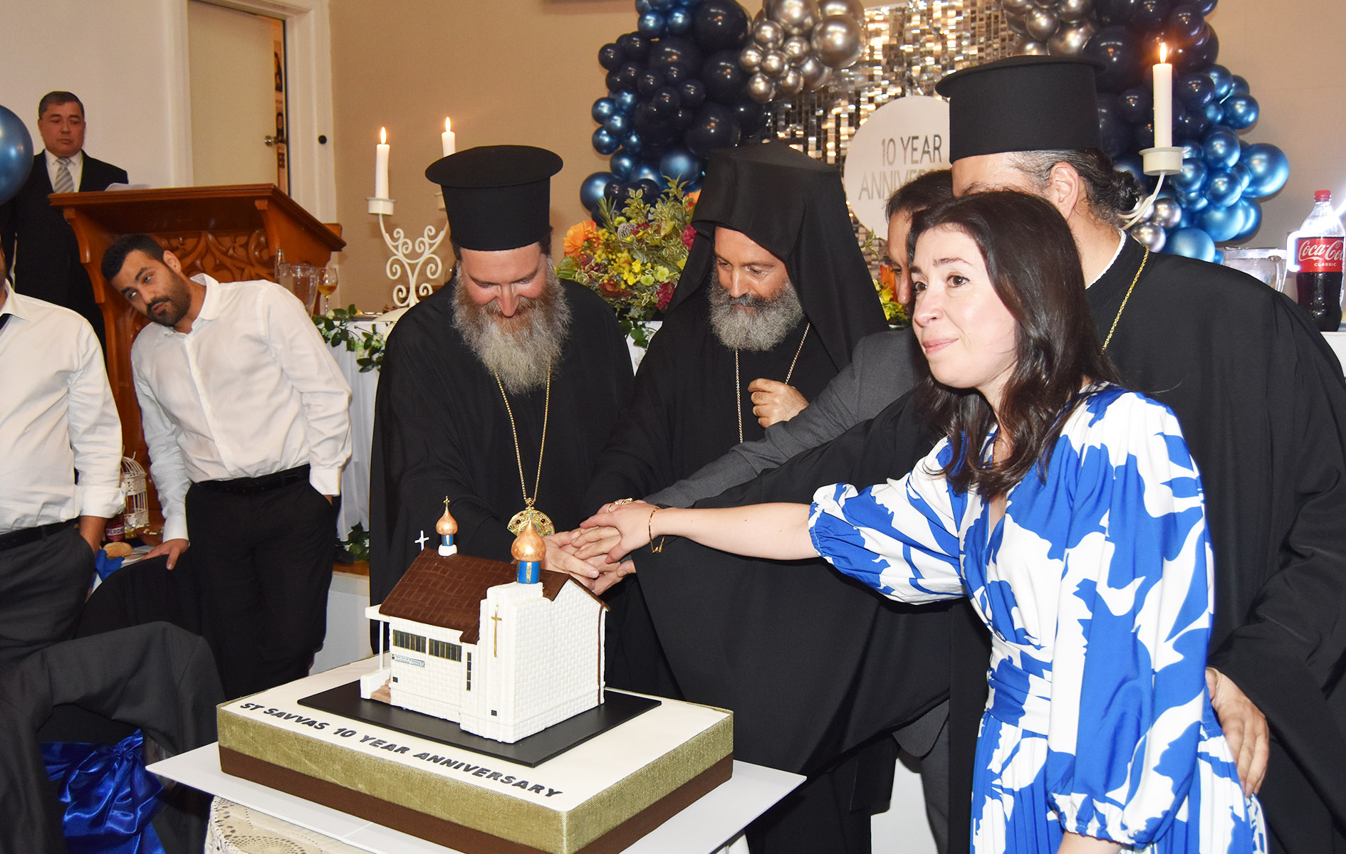 Η ζεστή και όμορφη βραδιά περιελάμβανε μουσική και παραδοσιακούς χορούς, ενώ στην κορύφωσή της ο Σεβασμιώτατος κ.κ. Μακάριος, περιστοιχούμενος από τον Επίσκοπο Πέρθης κ. Ελπίδιο, τον Ιερατικώς Προϊστάμενο π. Σάββα, την Πρεσβυτέρα Στέλλα και τον Πρόεδρο κ. Βελλή, έκοψε την εντυπωσιακή επετειακή τούρτα, που ήταν σε σχήμα μικρογραφίας της εκκλησίας του Αγίου Σάββα του Νέου του εν Καλύμνω στο Banksia του Σύδνεϋ.