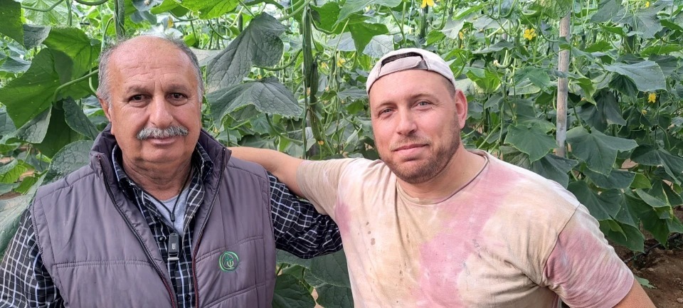 «Είμαι 14 χρόνια μαζί με τον Μανόλη Αγαπουλάκη και η συνεργασία μας είναι άριστη. Δουλεύουμε αυτή τη μέθοδο τόσα πολλά χρόνια και την ξέρουμε πάρα πολύ καλά. Θέλει πολύ μεγάλη προσοχή, γιατί θέλει αφαίρεση των φύλλων συχνά για να περνά ο ήλιος και ο αέρας, και επίσης θέλει τακτικό κουτσομούρισμα στα παράκαβα της αγγουριάς γιατί με τον τρόπο που την απλώνουμε πάνω στα σύρματα του θερμοκηπίου, το φυτό μπορεί να φθάσει μέχρι τα 5 μέτρα και έτσι βγάζει πολλούς πλάγιους βλαστούς.