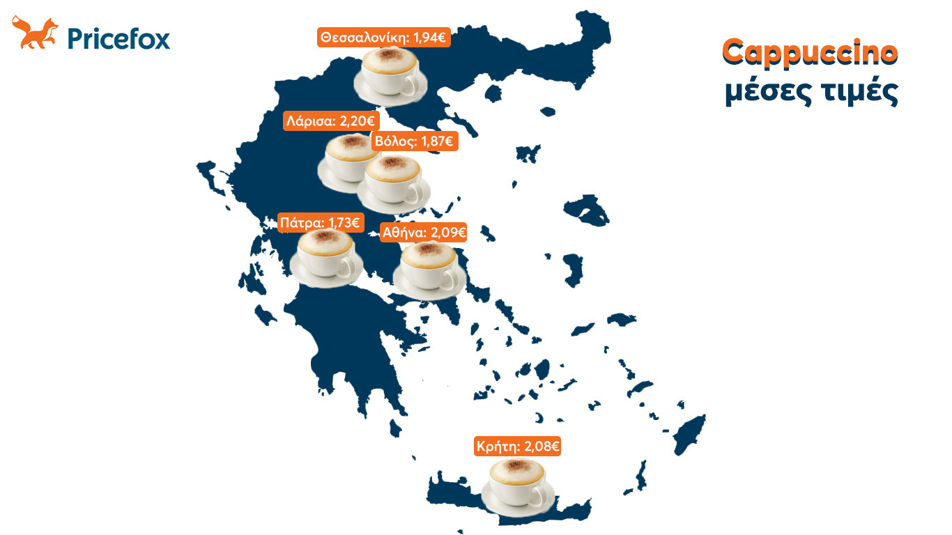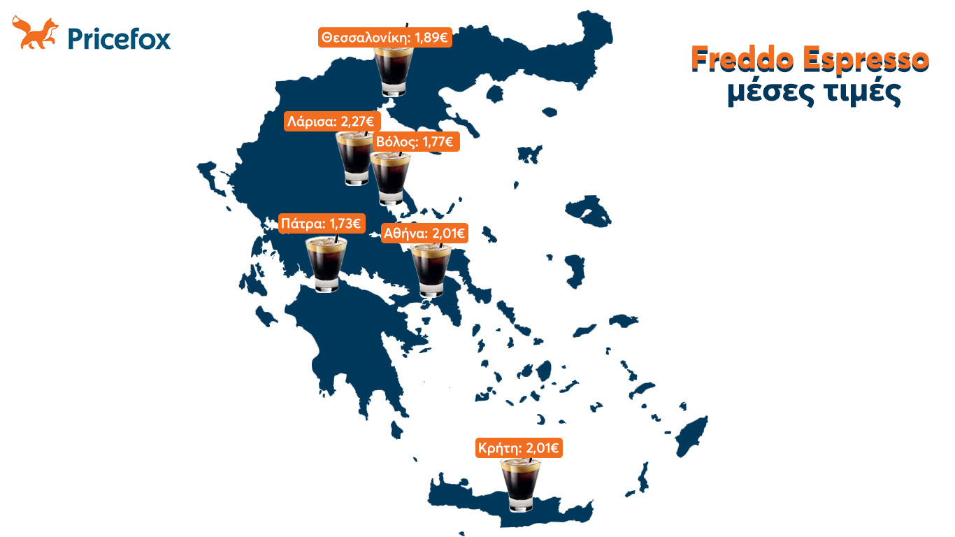 Ακριβά πληρώνουν Κρητικοί και τουρίστες τον φρέντο καπουτσίνο στην Κρήτη καθώς το συγκεκριμένο είδος καφέ έχει την πιο ακριβή μέση τιμή σε όλη την Ελλάδα, στα 2,37 ευρώ με τον ακριβότερο να πλησιάζει τιμές Κολωνακίου στα 3,5 ευρώ. Μετά την Λάρισα, η Κρήτη μαζί με την Αθήνα έχει τον ακριβότερο φρέντο επσρέσο με μέση τιμή 1,63 ευρώ.