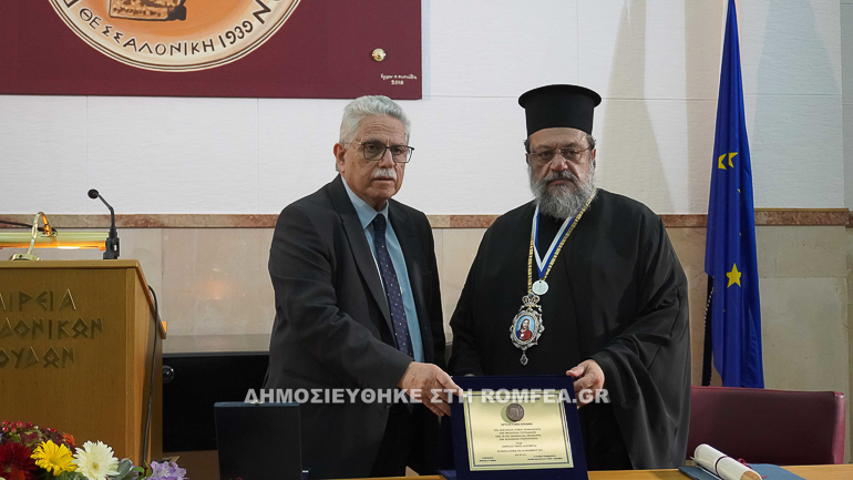 Μετά το πέρας της εκδήλωσης ακολούθησε η ανακήρυξη του ομιλητή ως Αντεπιστέλλοντος Μέλους της Εταιρείας Μακεδονικών Σπουδών, αναγνωρίζοντας την προσφορά του στην Εκκλησία, την Παιδεία και το Έθνος.