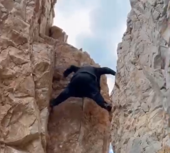 Όπως φαίνεται στο βίντεο, σκαρφαλώνει με απίστευτη ευκολία, στη βραχώδη και απότομη περιοχή «Καρούλια», που βρίσκεται υπό τη δικαιοδοσία τη Μονής Μεγίστης Λαύρας.