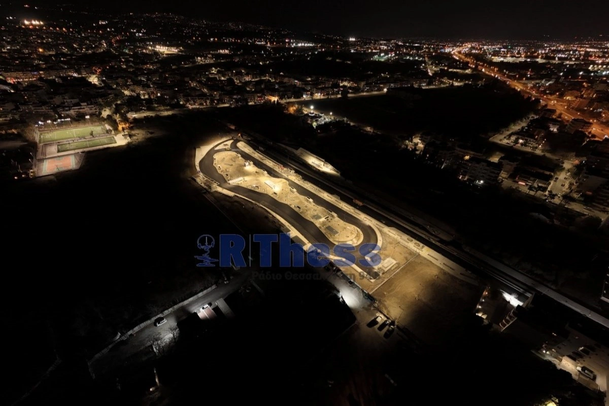 Η αναφορά γίνεται για τον σταθμό του Μετρό Θεσσαλονίκης στη Νέα Ελβετία, όπου για πρώτη φορά το βραδύ της Δευτέρας (25/11) άνοιξαν η προβολείς που έχουν τοποθετηθεί στο χώρο, με αποτέλεσμα να αναδειχθεί το έργο και να θυμίσει κάτι… από μηχανοκίνητο αθλητισμό.