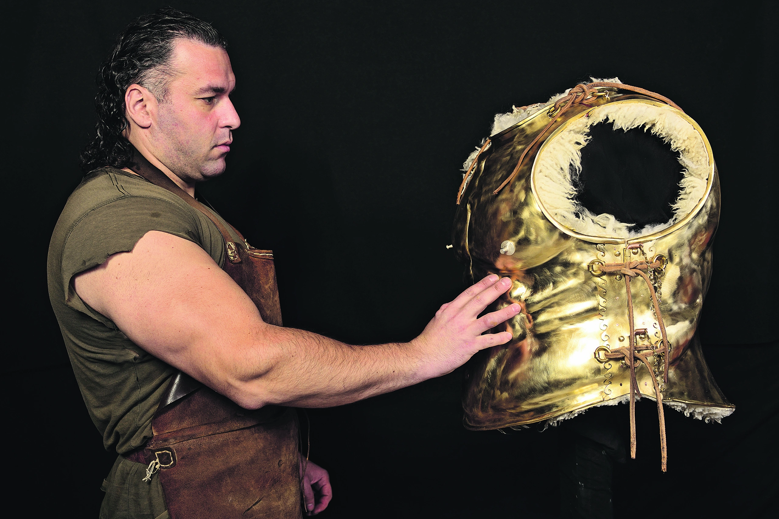 Με τα χέρια του και χωρίς καμία μηχανική βοήθεια, φιλοτεχνεί φυσικού μεγέθους πανοπλίες από τη μυκηναϊκή μέχρι και την ύστερη βυζαντινή περίοδο (1500 π.Χ – 1500 μ.Χ.). Ο αρματοποιός παρουσιάζει τα εντυπωσιακά έργα του σε χώρους πολιτισμού σε Κολωνάκι και Σπάτα και επιχειρεί να μετατρέψει το εργαστήριό του σε επισκέψιμο, ώστε οι μαθητές να μπορούν να δουν από κοντά με ποιον τρόπο κατασκευάζονταν οι πανοπλίες.