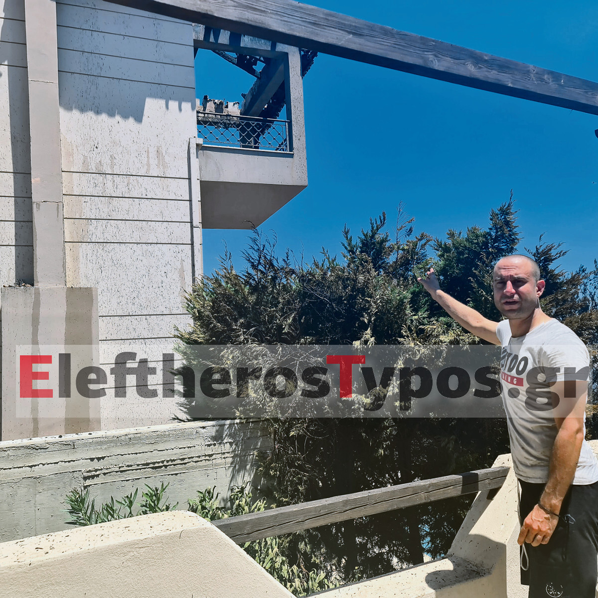«Το δικό μας σπίτι σώθηκε από θαύμα, αλλά στο διπλανό, όπως βλέπετε, η φωτιά μπήκε από τη στέγη και προκάλεσε μεγάλη καταστροφή», λέει ο Μιχάλης Αθανασόπουλος, δείχνοντάς μας πώς η φωτιά σταμάτησε στο μπαλκόνι του, στο Πανόραμα Παλλήνης, και ξεκαθαρίζει ότι δεν θα μείνει με σταυρωμένα χέρια… «Τώρα και οι δύο οικογένειες θα υποβάλουμε μηνύσεις εις βάρος του γείτονά μας, που έχει εδώ μπροστά ένα οικόπεδο με δέντρα και χόρτα, τα οποία έχουν χρόνια να καθαριστούν. Αυτό το οικόπεδο έγινε προσάναμμα για τη φωτιά, που μέσα σε ελάχιστο χρόνο έφτασε στα σπίτια».