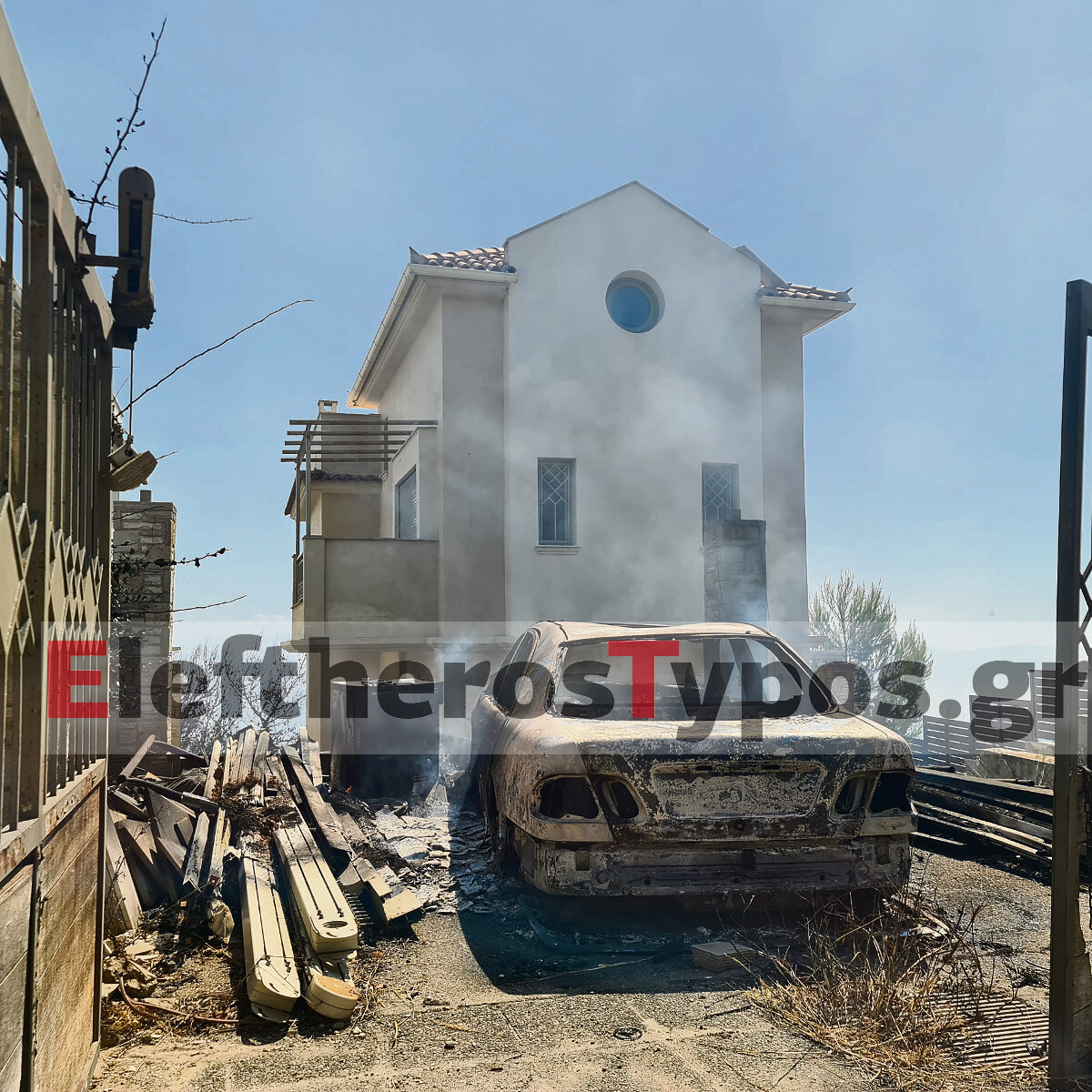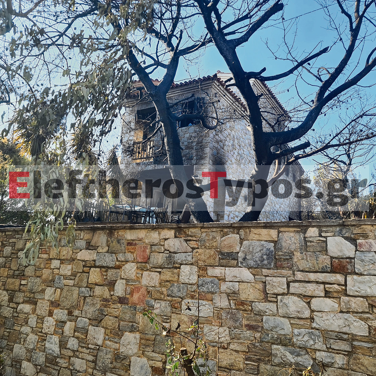 Η πρόσοψη του σπιτιού είναι σε ξέφωτο, ακριβώς δίπλα σε κρουνό της Πυροσβεστικής, και η καταστροφή με την πρώτη ματιά μοιάζει ανεξήγητη. Στην πίσω πλευρά, ωστόσο, η κατοικία σχεδόν εφάπτεται με πανύψηλα δέντρα που… λαμπάδιασαν και η φωτιά πέρασε στο σπίτι.