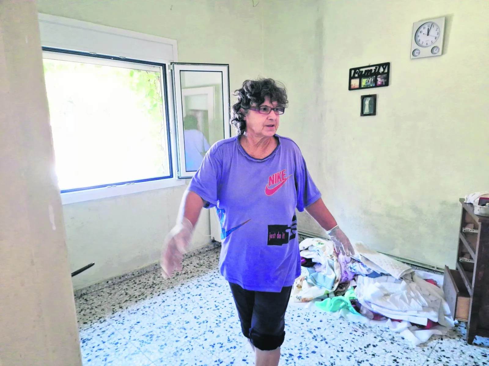 Λίγο πιο κάτω μια άλλη κάτοικος, η κ. Κατερίνα απλώνει κλινοσκεπάσματα στους φράχτες με φόντο τον δικό της σωρό κατεστραμμένων επίπλων. «Βγαίνω έξω και βλέπω ότι ο δρόμος έφερνε πολύ νερό, προσπάθησα να στηρίξω την εξώπορτα κι έπαιρνα τηλέφωνο τον Δήμο να μου φέρει σακιά με άμμο αλλά δεν έβρισκα κανέναν. 53 χρόνια πάλευα εγώ για αυτό το σπίτι και ό,τι είχα χάθηκε. Ζητάμε από την Πολιτεία να μην μας ξεχάσει, να μας αποζημιώσει 100%» λέει η κ. Κατερίνα που απεγκλωβίστηκε τελικά μαζί με τον άρρωστο σύζυγό της με βαρύ όχημα του Δήμου Παλαμά.