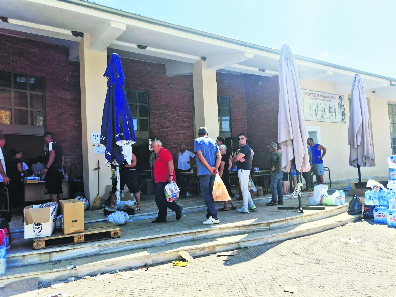 Η μεγαλύτερη κινητικότητα στον Παλαμά παρατηρείται στο Μουσών Μέλαθρον, τον χώρο όπου συγκεντρώνεται η ανθρωπιστική βοήθεια για τους πληγέντες. Ενα ζευγάρι ηλικιωμένων σκύβει με λαχτάρα μέσα στις κούτες και ψάχνει προϊόντα. Βγάζει μωρομάντιλα και κάποια τρόφιμα και τα βάζει βιαστικά σε μια σακούλα. Οι νταλίκες σχηματίζουν ουρές για να ξεφορτώσουν προϊόντα που φτάνουν από κάθε γωνιά της χώρας αλλά και από το εξωτερικό. «Ηρθε βοήθεια ακόμα και από το Ντουμπάι γιατί ένας συμπολίτης μας ζει εκεί και έστειλε φορτίο η εταιρία του. Εχουμε ήδη πάρα πολλά ρούχα που τα στέλνουμε σε άλλες δομές. Βοηθούν όλοι όπως μπορούν» λέει ο εθελοντής Γιώργος Σουλέας που βοήθησε να σωθούν συμπολίτες του στην πλημμύρα και τώρα βοηθάει στη διανομή των προϊόντων. Οπως εξηγεί στον «Ε.Τ.», ο μεγάλος φόβος των κατοίκων είναι πια οι ασθένειες καθώς και ο ίδιος διαγνώστηκε με δερματική μόλυνση και ακολουθεί φαρμακευτική αγωγή.