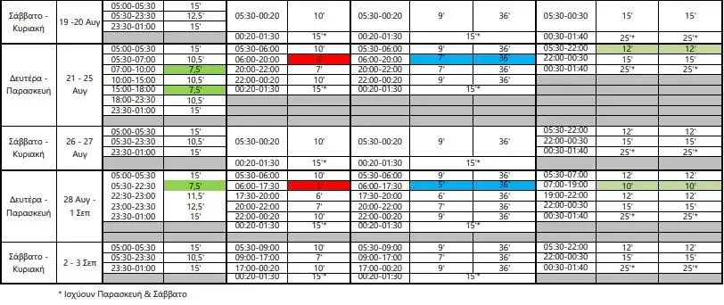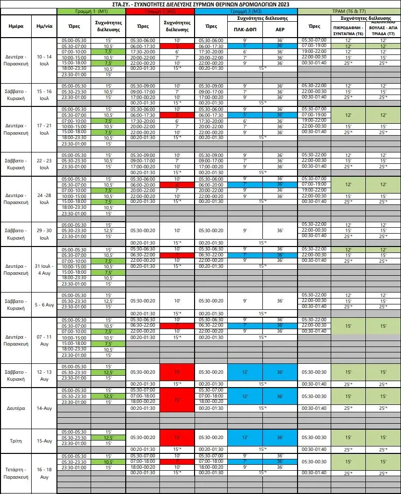 Η αλλαγή αφορά τα μέσα σταθερής τροχιάς (Γραμμές 1, 2 και 3 του μετρό και το τραμ) και το νέο πρόγραμμα θα έχει ισχύ έως και την Κυριακή 3 Σεπτεμβρίου.