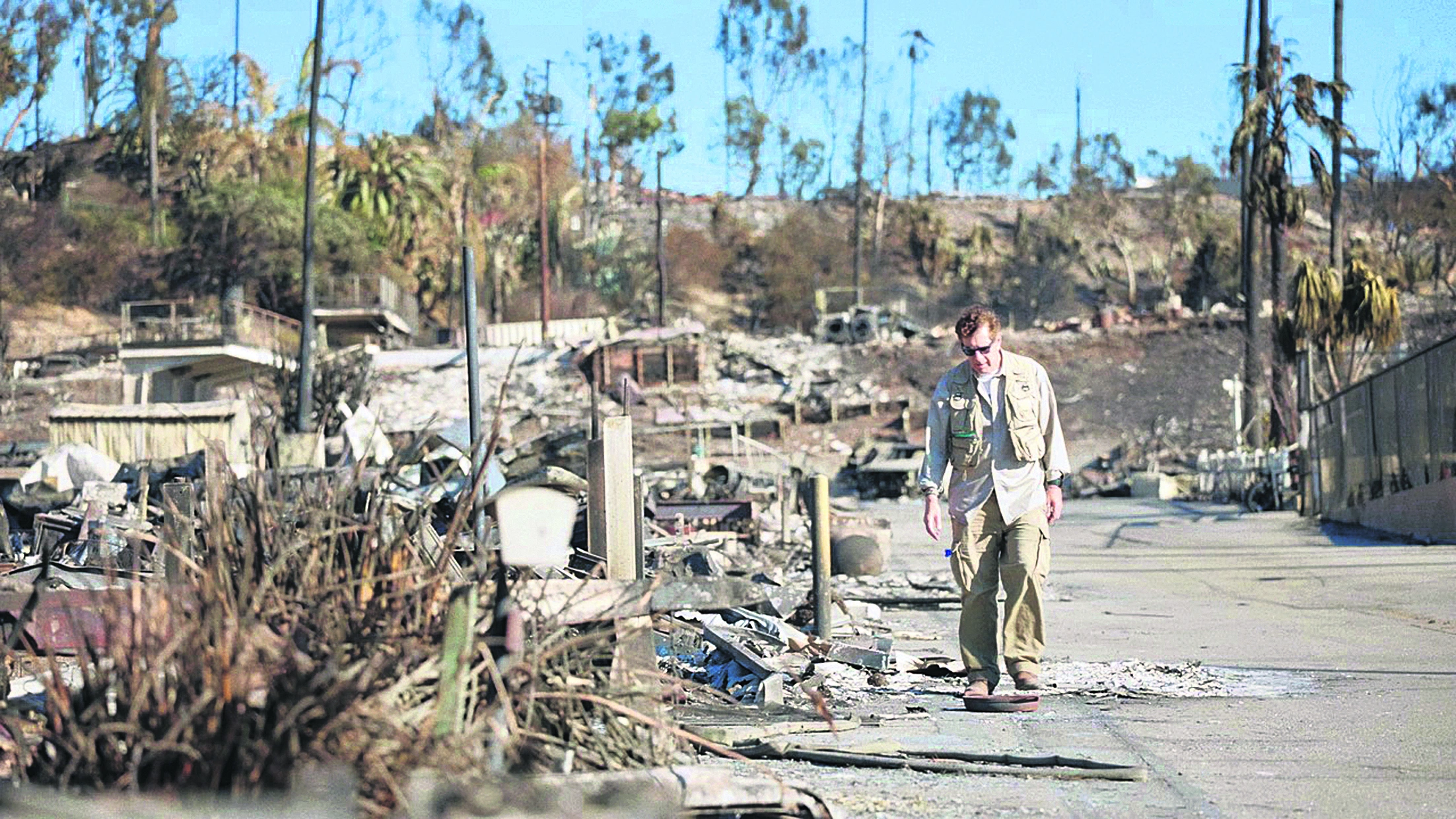Στις φωτογραφίες που τράβηξε ο κ. Λέκκας φθάνοντας στο Λος Αντζελες φαίνεται μέρος της έκτασης της καταστροφής. Σύμφωνα με τον κ. Λέκκα, η αντιμετώπιση της πυρκαγιάς υπό τις παραπάνω συνθήκες καθίσταται μια εξαιρετικά δύσκολη εξίσωση, με πολλές παραμέτρους που δεν είναι ακόμα γνωστές. Ενδεικτικό είναι το στοιχείο που αναφέρει ότι «λόγω των μεγάλων θερμοκρασιών άνω των 1.000 βαθμών Κελσίου, όταν ένα πτητικό μέσο κατάφερνε να πετάξει και έριχνε νερό, αυτό φθάνοντας στα 500 μέτρα από τη φωτιά εξατμιζόταν, δηλαδή ήταν σαν να μη γινόταν η ρίψη».